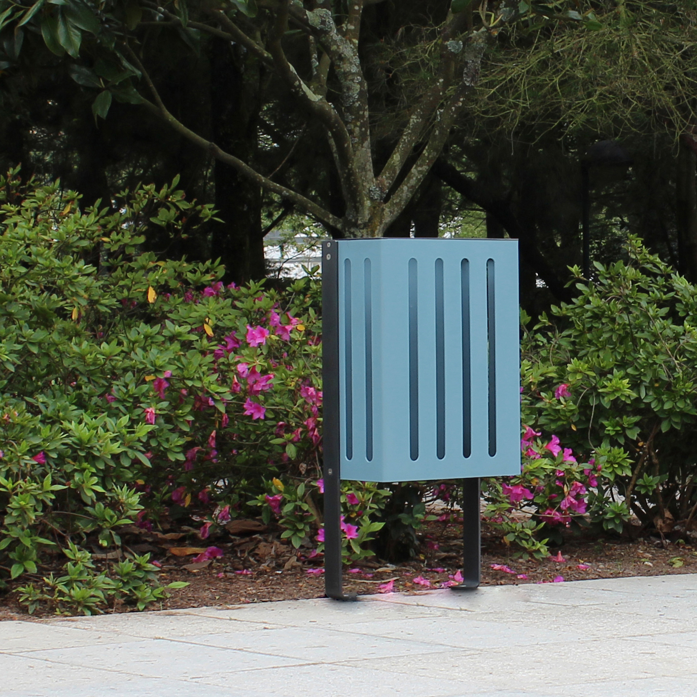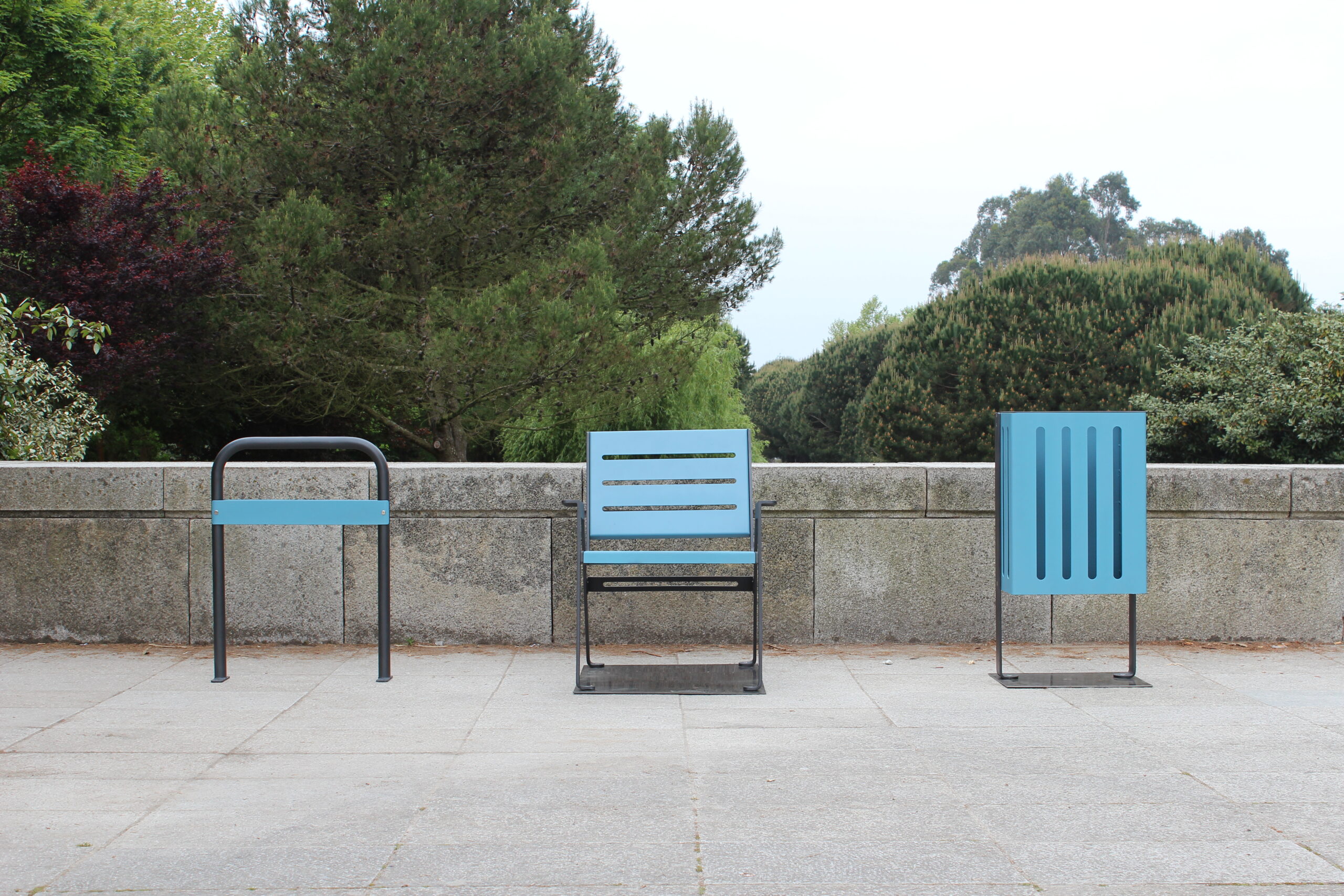 Collection of metal street furniture based on a simple construction system, applicable to a bench, chair, waste bin, recycling bin and bicycle rack. The construction of the bench has the particularity of using a paint with cork particles, with the aim of reducing the thermal impact on the heating of the metal, when placed outdoors.