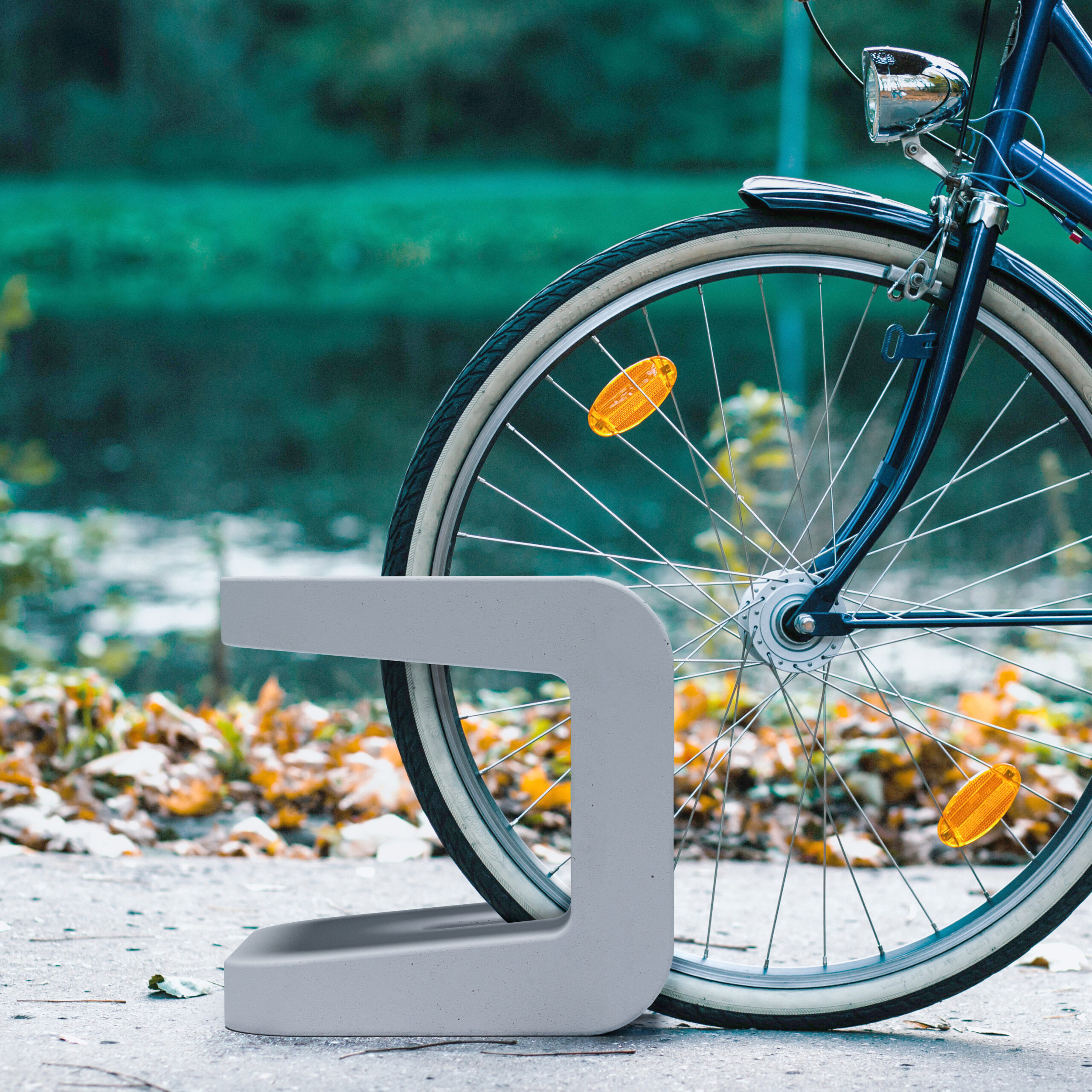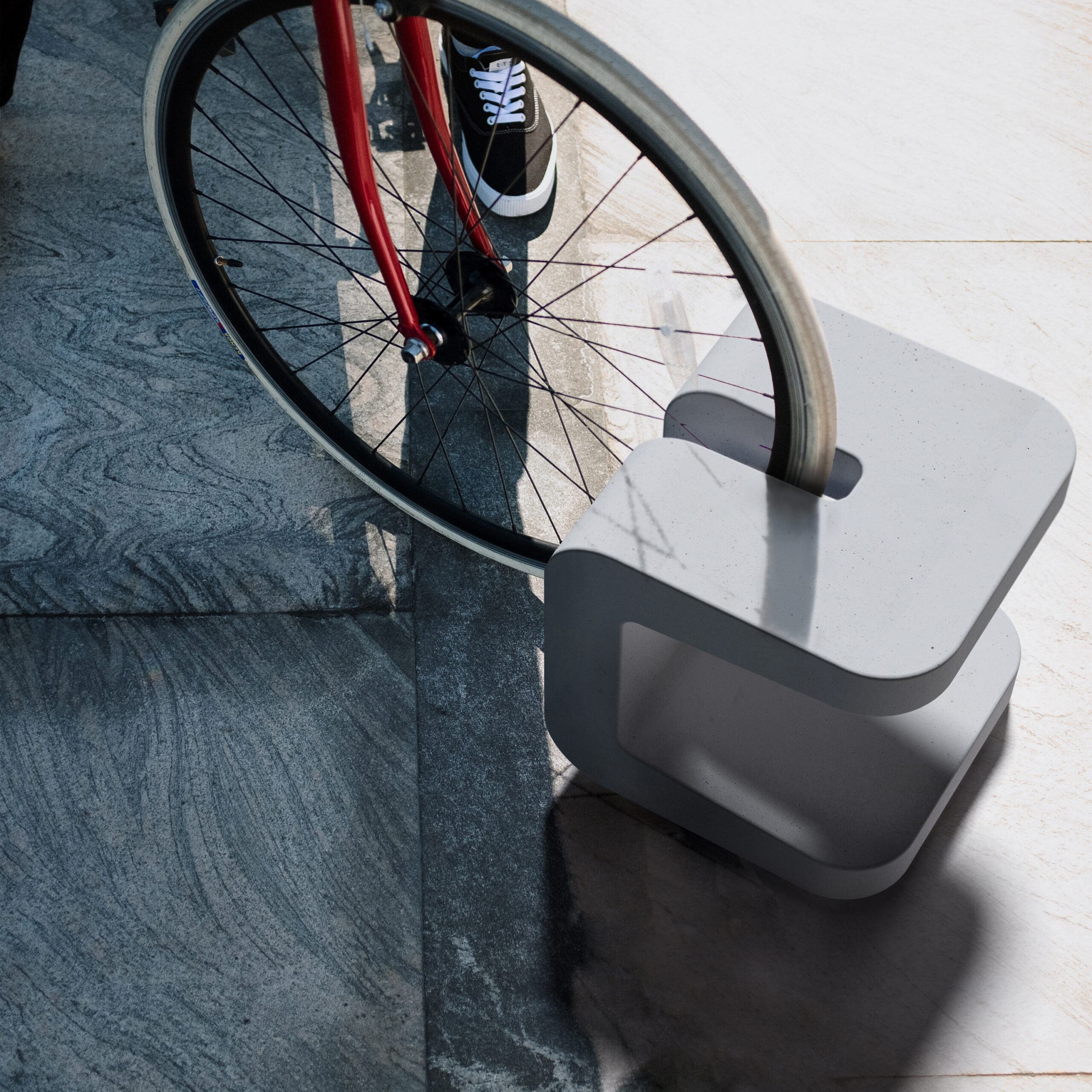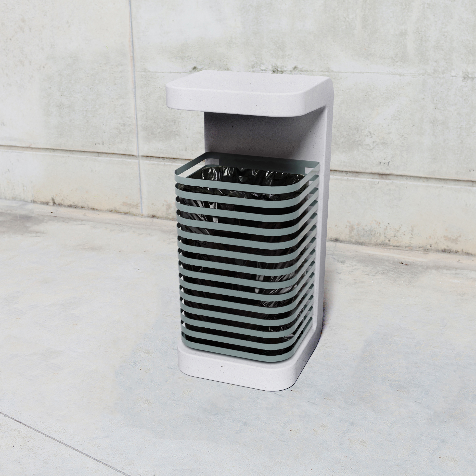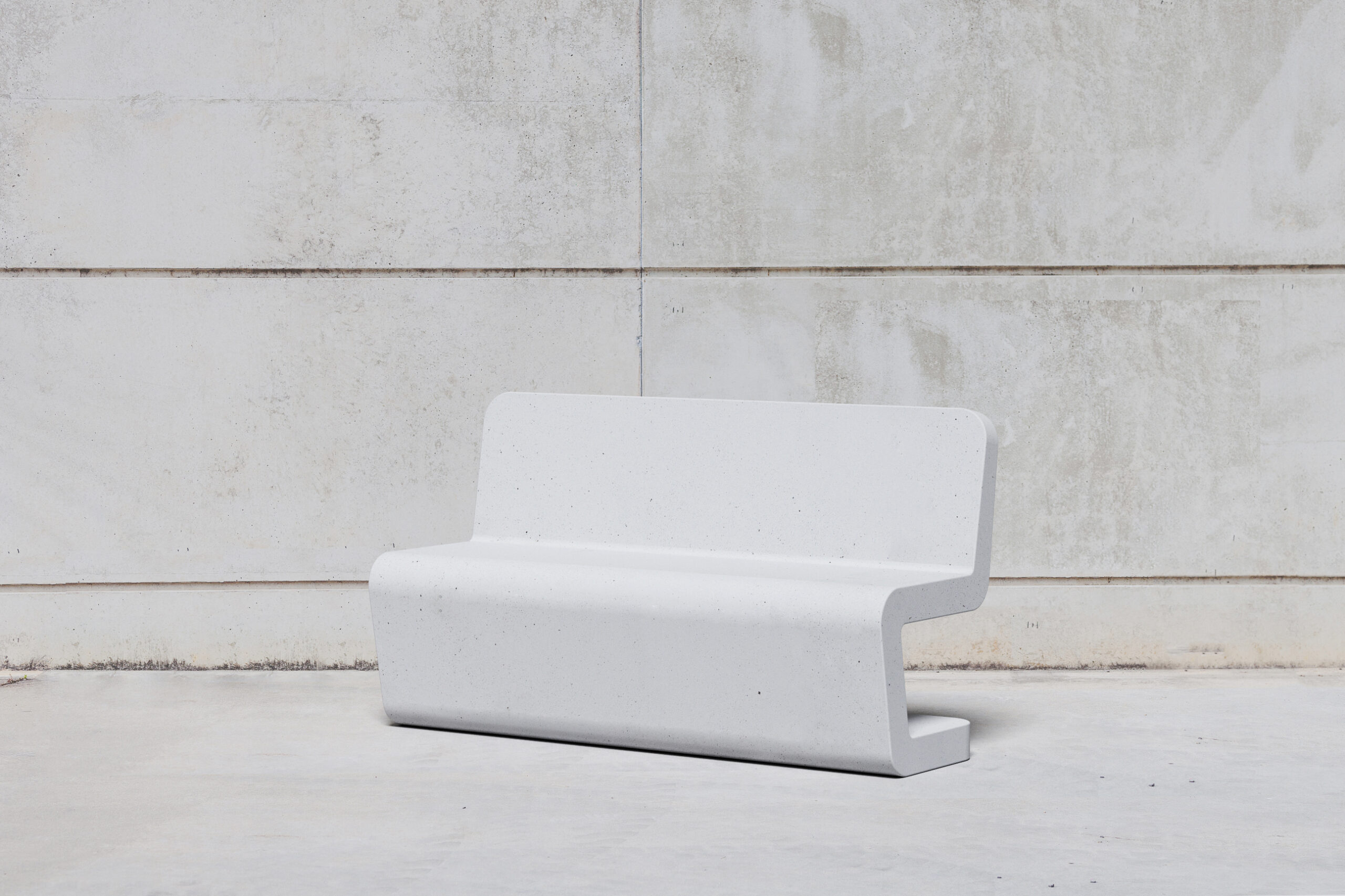 Minimalist urban furniture collection developed from the creation of a bench and chair with solid concrete backrest constructed from a side profile with a single continuous line, which also applies to the respective complementary urban elements, such as a waste bin, bollard with lighting and bicycle rack.